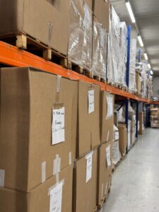 Toutes les marchandises sont emballées entreposées au mieux en fonction de leur fragilité. Nous stockons sur palettes, cintres et packs.